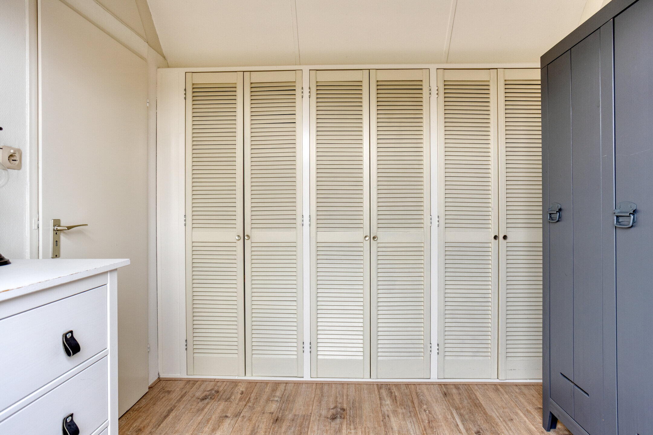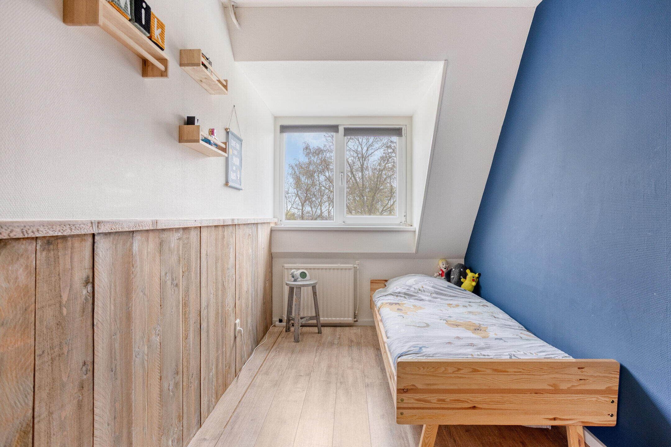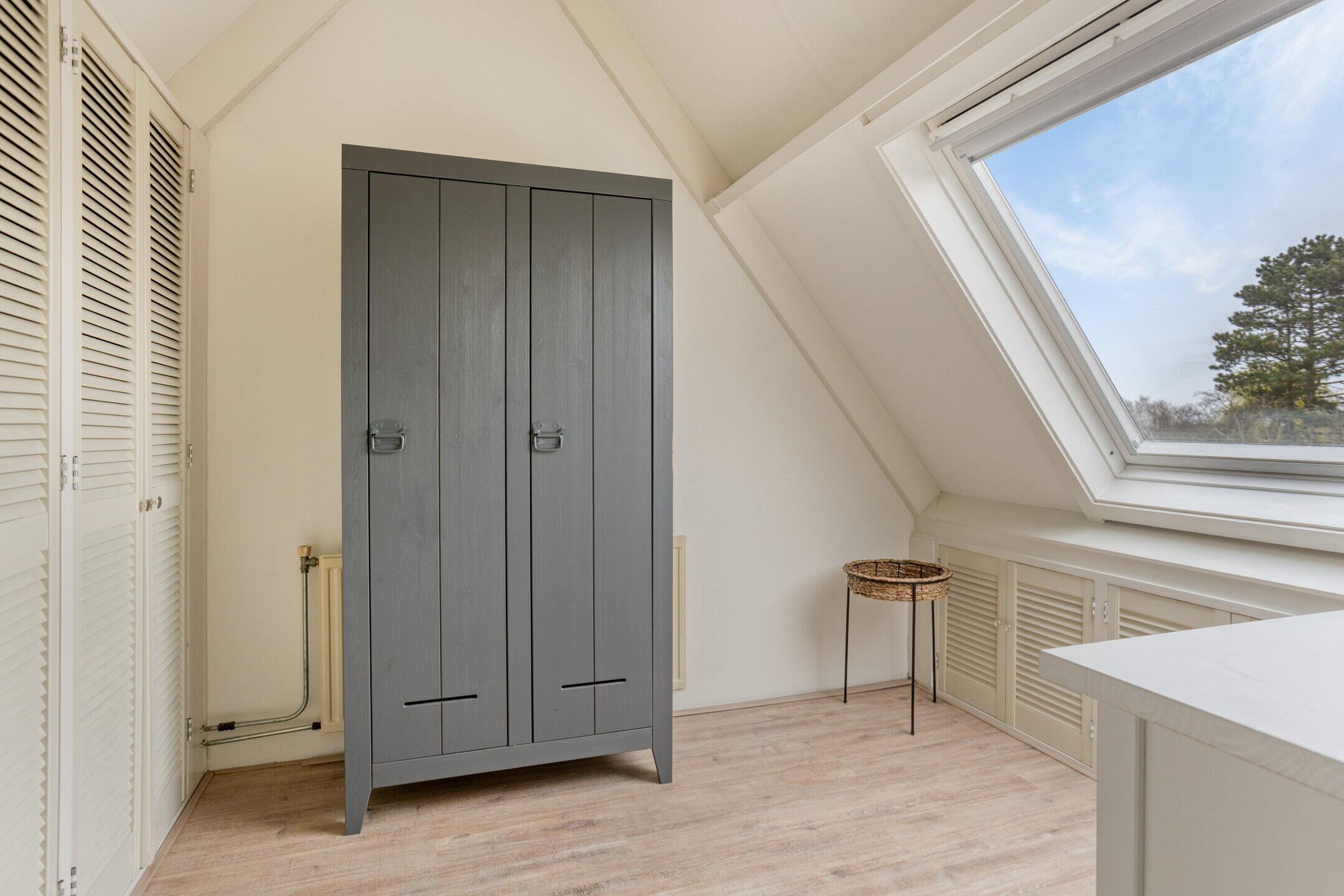 De 4e slaapkamer kan perfect dienen als slaapkamer, studeerkamer of logeerkamer. Via de slaapkamer is er toegang tot de vliering. Zowel op de overloop als de in de slaapkamer is er voldoende opbergruimte achter de knieschotten