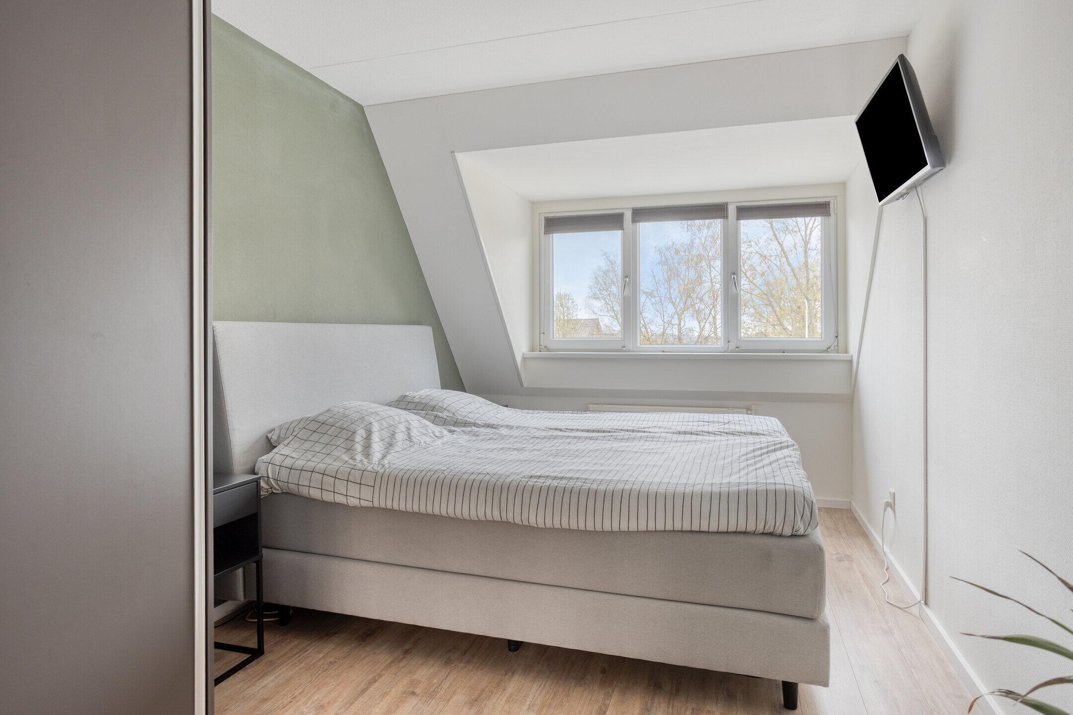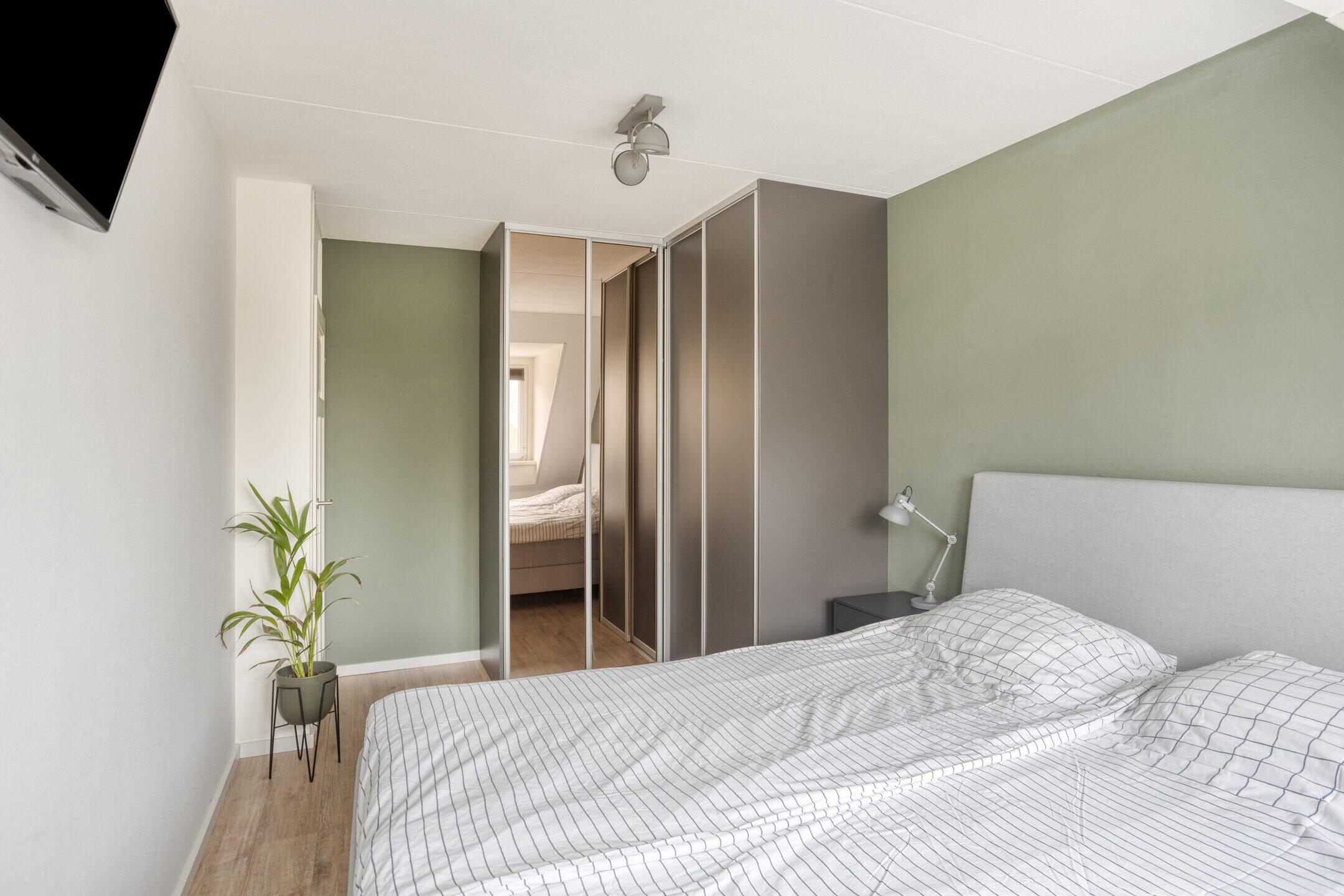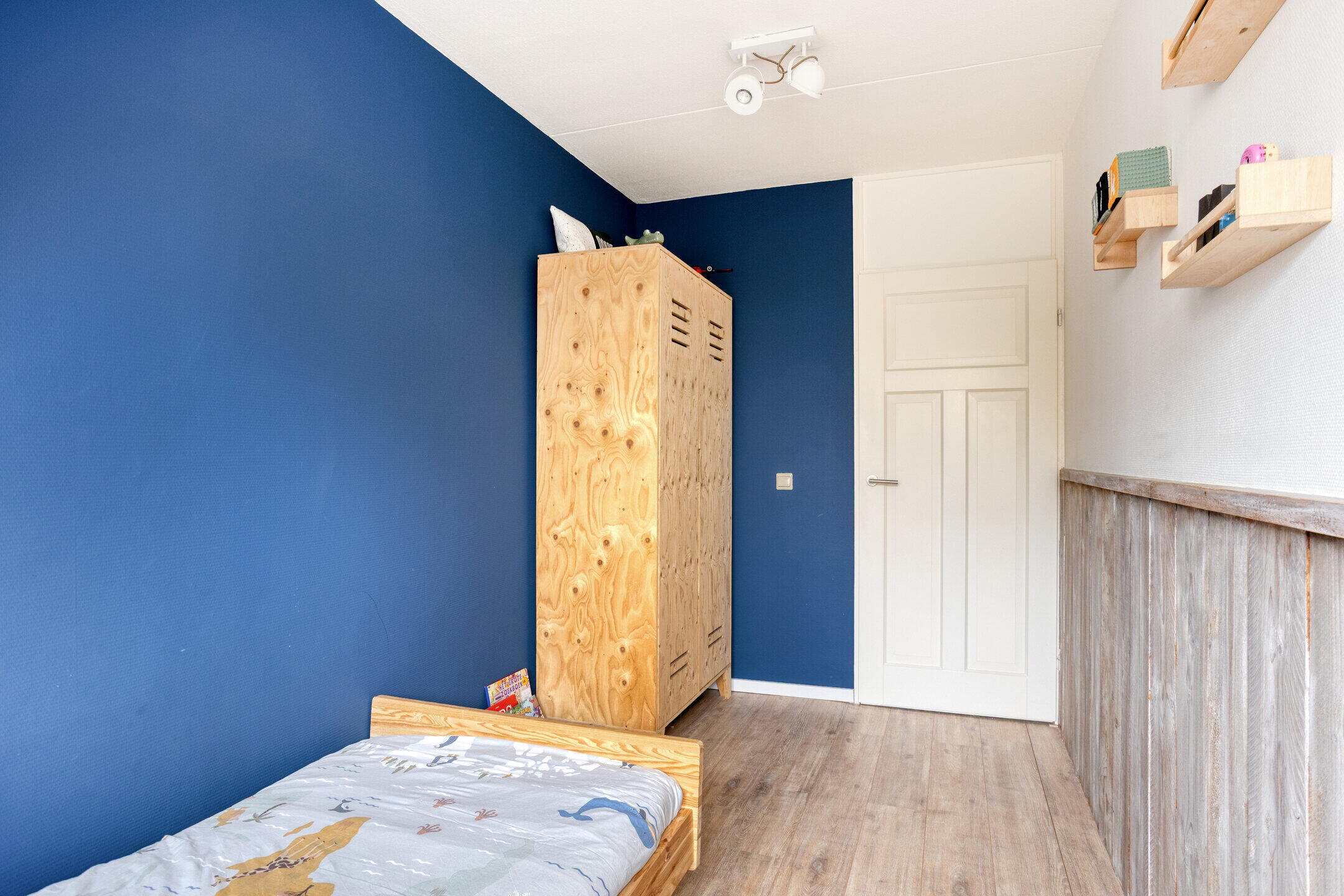 De 4e slaapkamer kan perfect dienen als slaapkamer, studeerkamer of logeerkamer. Via de slaapkamer is er toegang tot de vliering. Zowel op de overloop als de in de slaapkamer is er voldoende opbergruimte achter de knieschotten