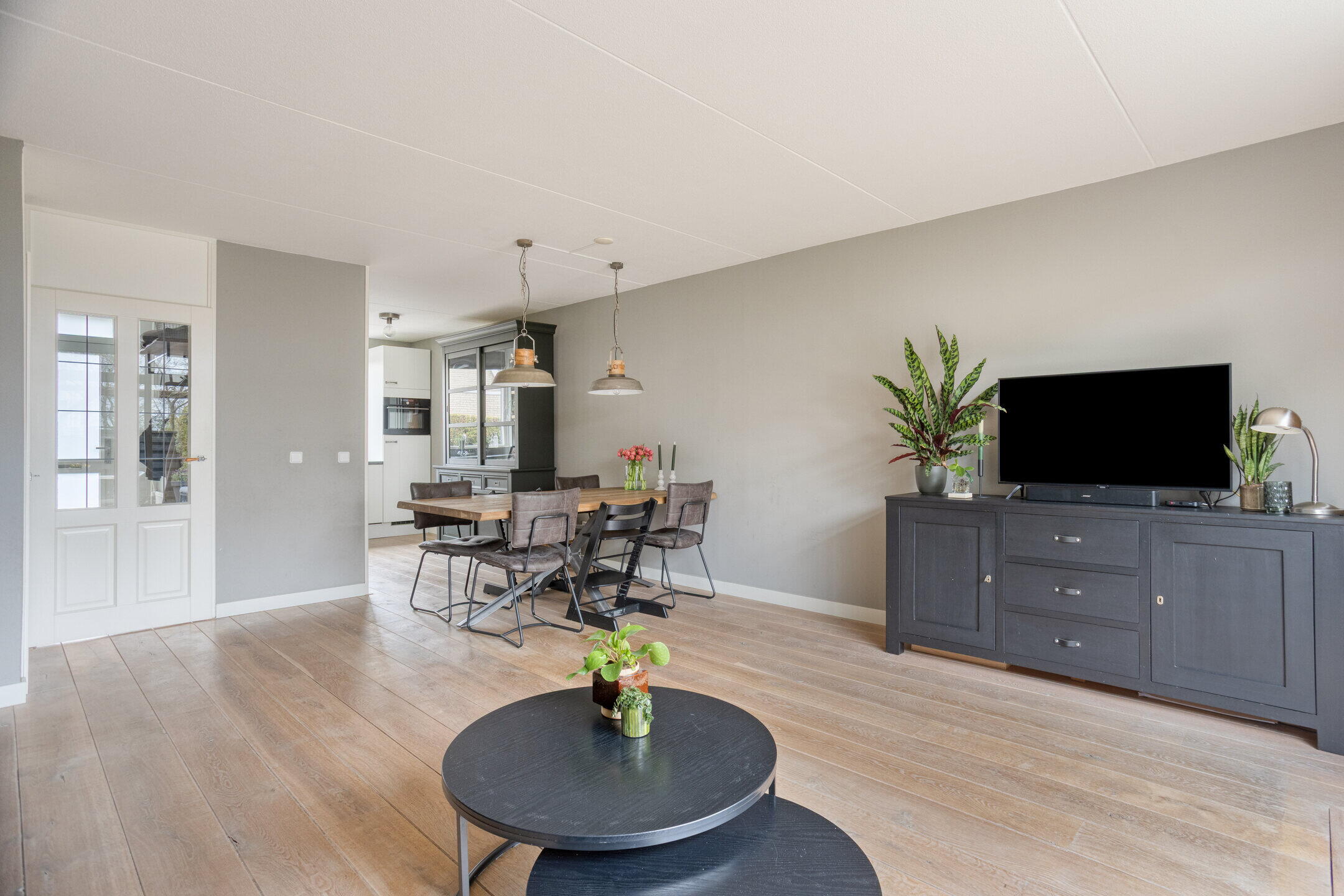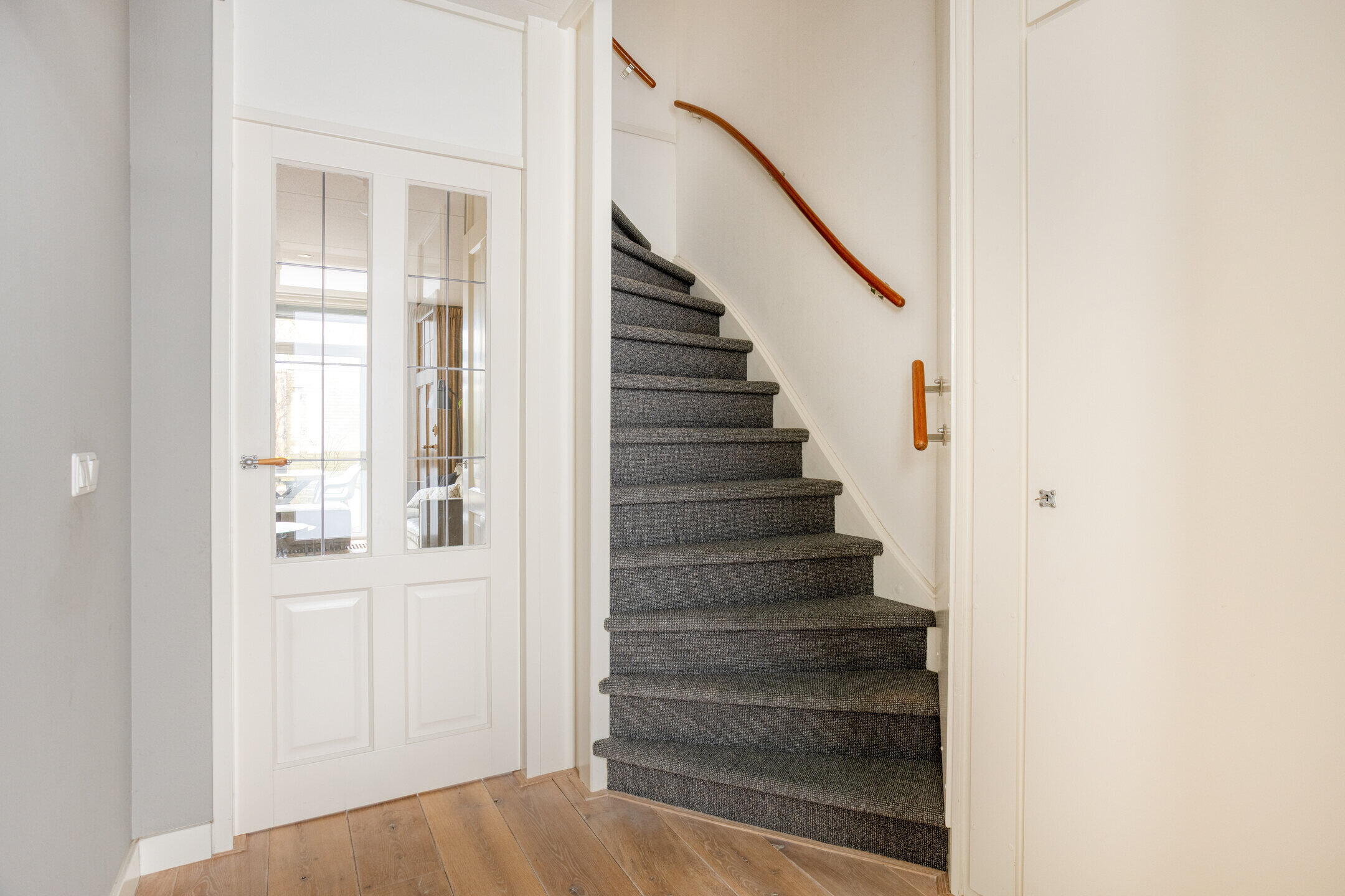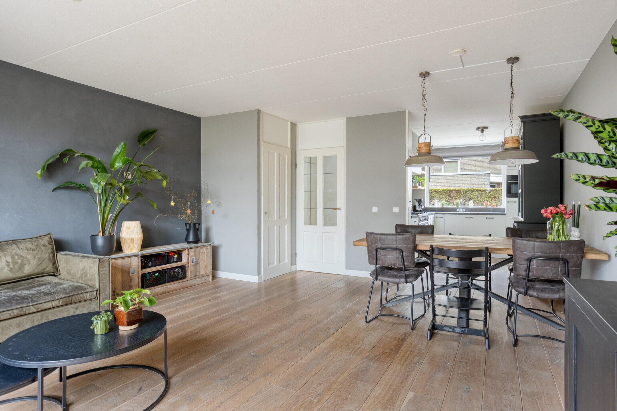 Bij binnenkomst treffen we een uitnodigende entree die toegang biedt tot de meterkast, een nette wc, trapopgang naar de verdieping en de ruime woonkamer. De lichte woonkamer zorgt voor een warme en gastvrije sfeer en is perfect voor gezellige avonden met het gezin. De grote schuifpui geeft je de mogelijkheid om een directe verbinding met de zonnige achtertuin te maken, waardoor je in de zomer kunt genieten van het buitenleven. Voor extra opbergruimte is er bovendien een handige trapkast.